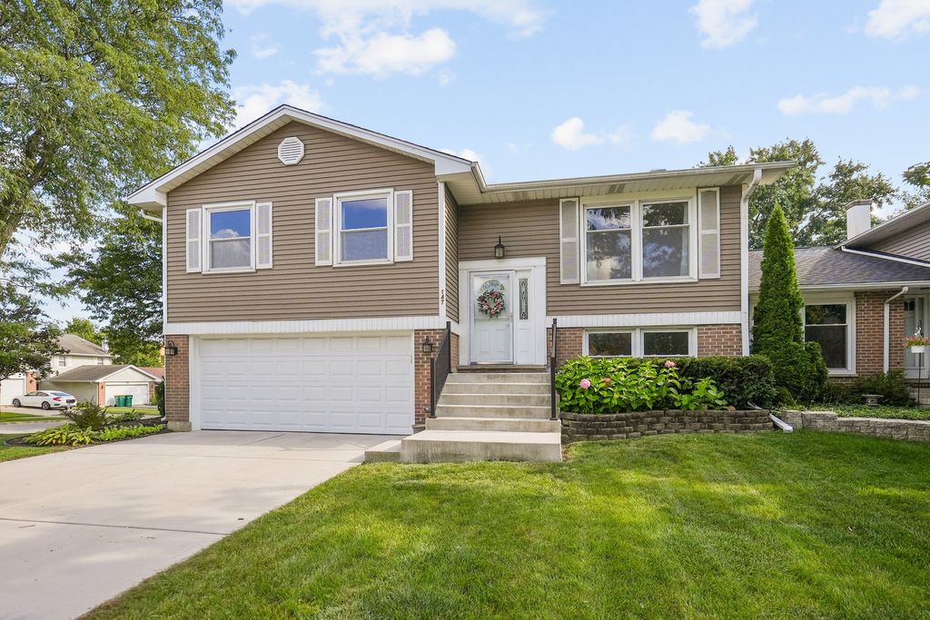 Terrific townhouse living with no HOA fees! End unit with large newly fenced yard (2023) and lots of light! Bi-level style - upstairs features large living room with engineered wood floors which flow into to the dining room & kitchen. Spacious dining area w/sliding door to oversized deck with garden lights, freshly stained. Kitchen is nicely updated with custom 42" cabinets, granite countertops, black appliances, tile backsplash & recessed lighting plus large sink perfectly positioned below a large garden window. There are 3 bedrooms on this level including a large primary bedroom with private access to the updated hall bath featuring tile wall, custom vanity with quartz top, tile flooring, tub/shower combo & new fixtures. Step down to the lower level with office or possible 4th bedroom, updated full bath w/custom vanity & fixtures, laundry room, AND family room with fireplace & sliding door to the newer concrete patio (2019). Newer carpet in lower level, new furnace (2020), newer concrete driveway & concrete front stairs with railing, epoxy garage floor accessible from the lower level, newer garage door & opener. White trim thruout plus newer interior doors (2019). FANTASTIC location 2 blocks to Yorktown mall, .5 miles to I-355 & I-88 access! HURRY!