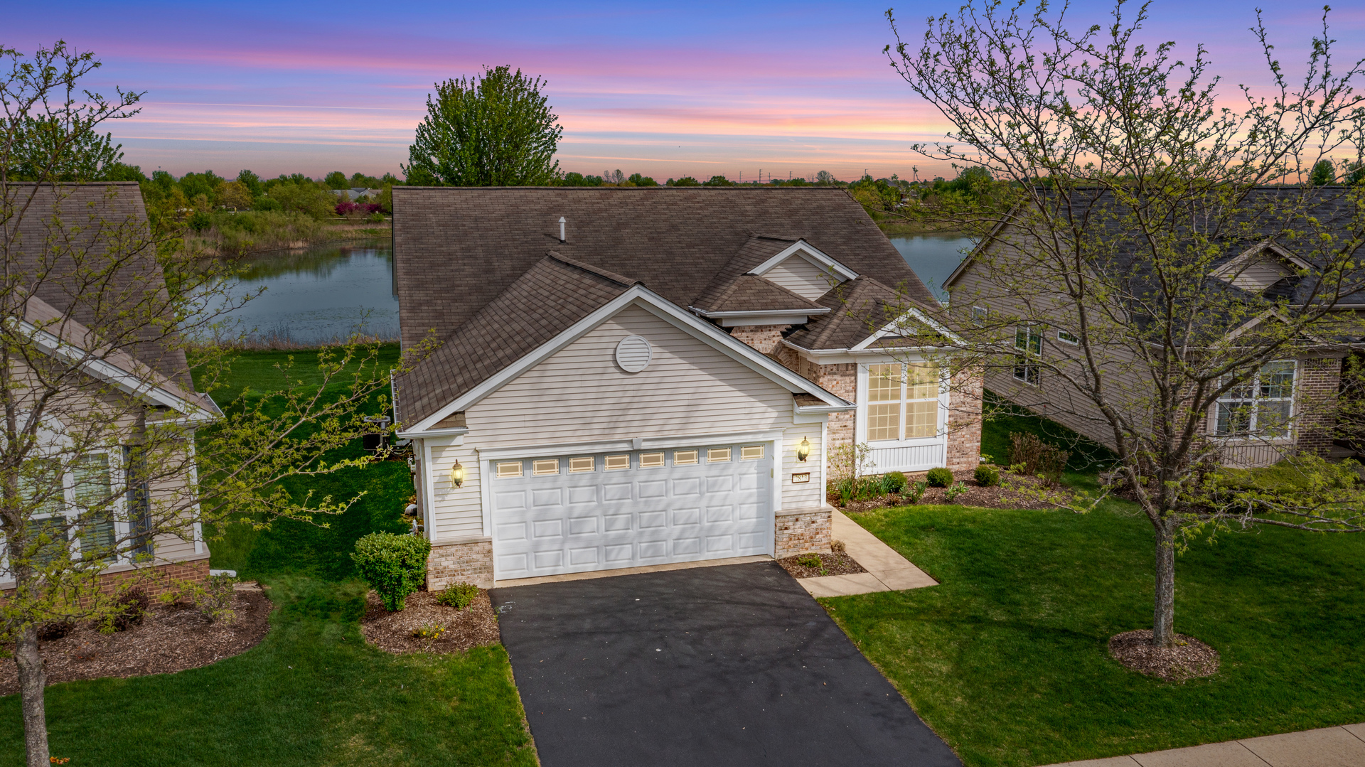 Welcome to 2813 Edgewater Drive located in a gated 55+ adult community on a premium lot ~ seller paid a 30K premium to have this amazing view that can be enjoyed from the primary bedroom, living room, kitchen and patio! Featuring: 2 Bedrooms ~ Office/Den ~ Primary bedroom en suite with separate shower, tub, dual sink vanity and spacious walk in closet ~ Hardwood flooring throughout the dining room & living room ~ Upgraded foyer with wainscoting,crown molding & ceramic tile ~ Ceiling fans in both bedrooms, kitchen, office and living room ~ Eat-in kitchen offers 42" cabinets, Corian countertops, island, pantry and ceramic tile flooring ~ Newer stove (approx 1 year old), Brick paver patio with gas hook up for a grill ~ Awning ~ Sprinkler system ~ Brick faced front & archway as you enter the home ~ Plus tons of amenities close by: Creek Side Lodge with an indoor and outdoor pool, hot tub, tennis courts, bocce court, billiards, community room, arts & craft room, library, fitness center along with walking paths throughout the community.